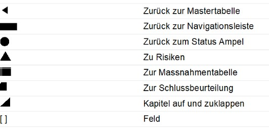 Folgende Symbole werden zur Navigation innerhalb des Dokumentes verwendet: